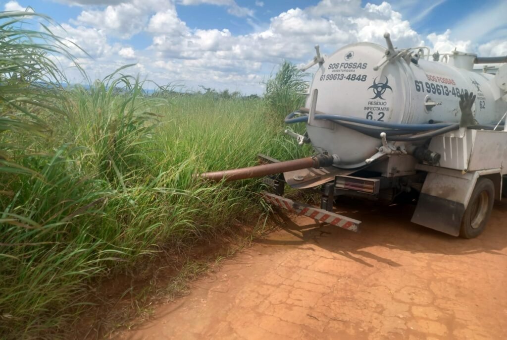DF Legal flagra caminhoneiro jogando lixo de fossa em área pública. Veja vídeo