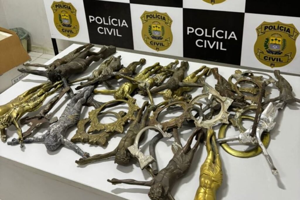 A polícia apurou que o suspeito furtava as peças metálicas e os crucifixos para vendê-los e obter lucro — Fonte original: Metropoles