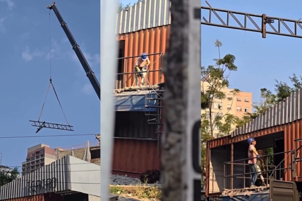 Prefeitura iniciou, nesse sábado (21/3), a remoção da estrutura do Teatro de Contêiner. Ação acontece em meio à batalha judicial — Fonte original: Metrópoles Geral