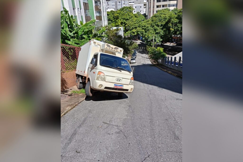 Motorista de um Hyundai HR chamou os bombeiros após caminhão não conseguir subir a rua Rafael Magalhães, no bairro Santo Antônio — Fonte original: Metrópoles Geral