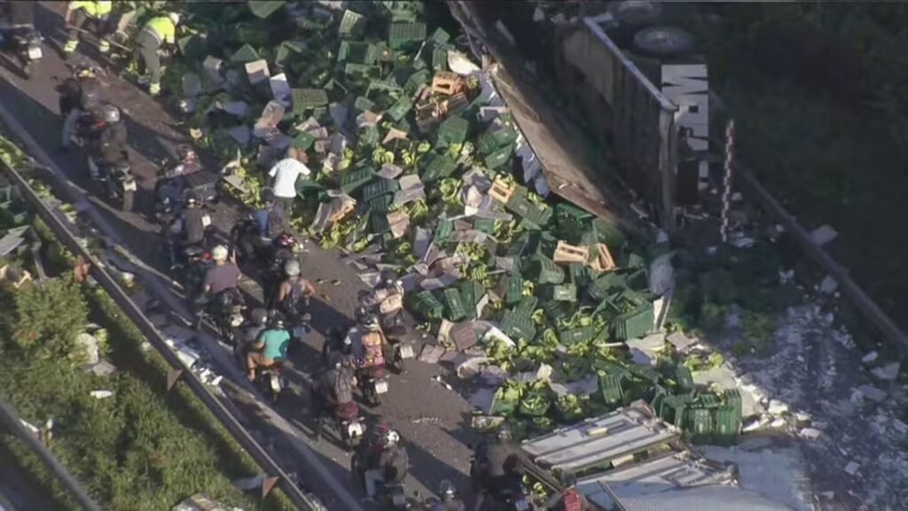 A colisão aconteceu por volta das 6h, no Km 138, no sentido Rio de Janeiro, próximo ao pedágio. Duas pessoas ficaram feridas — Fonte original: Metropoles