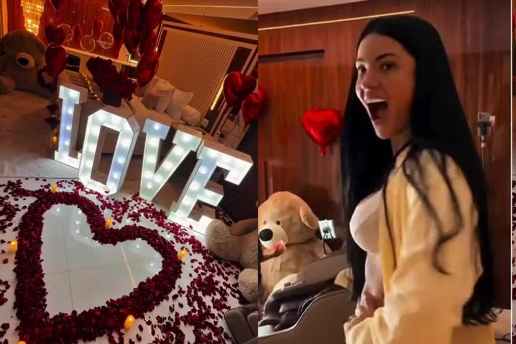 Belo surpreendeu a namorada, Rayane Figliuzzi, com uma decoração romântica em uma pousada em Paraty, no Rio de Janeiro