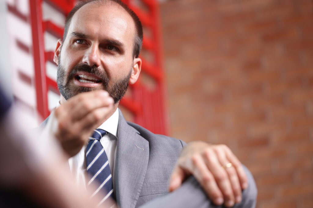 A presença do ex-deputado Eduardo Bolsonaro (PL) na audiência no STF não é garantida. A ideia é que ele seja ouvido por videoconferência — Fonte original: Metropoles