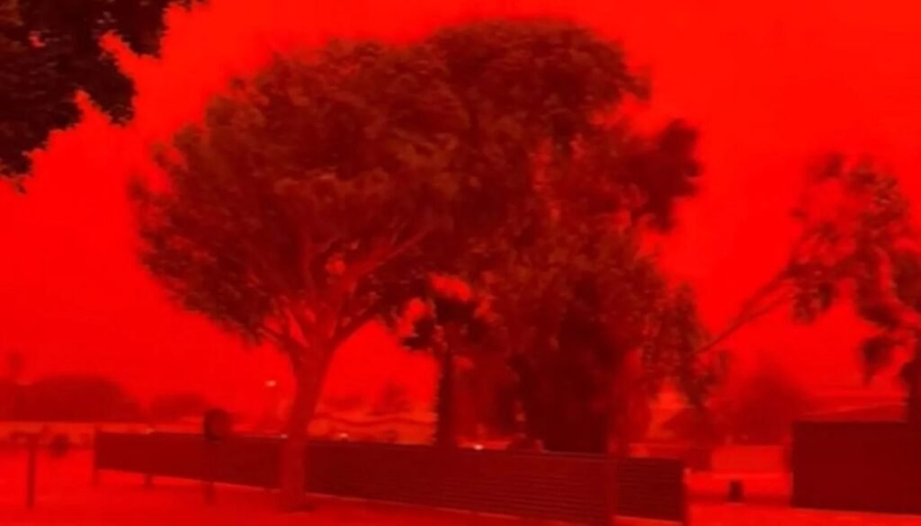 Além da interrupção nas usinas de gás natural, ciclone deixou o céu avermelhado na parte oeste do país — Fonte original: Metropoles