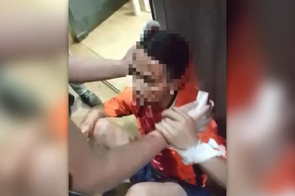 Churrasqueira e facão: homem é espancado por 5 pessoas no meio da rua