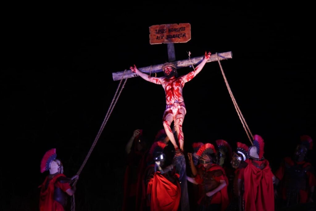 Tradicional encenação emocionou os milhares de fiéis ao longo desta Sexta-feira da Paixão (3/4). Clima colaborou e não choveu no local — Fonte original: Metrópoles Geral